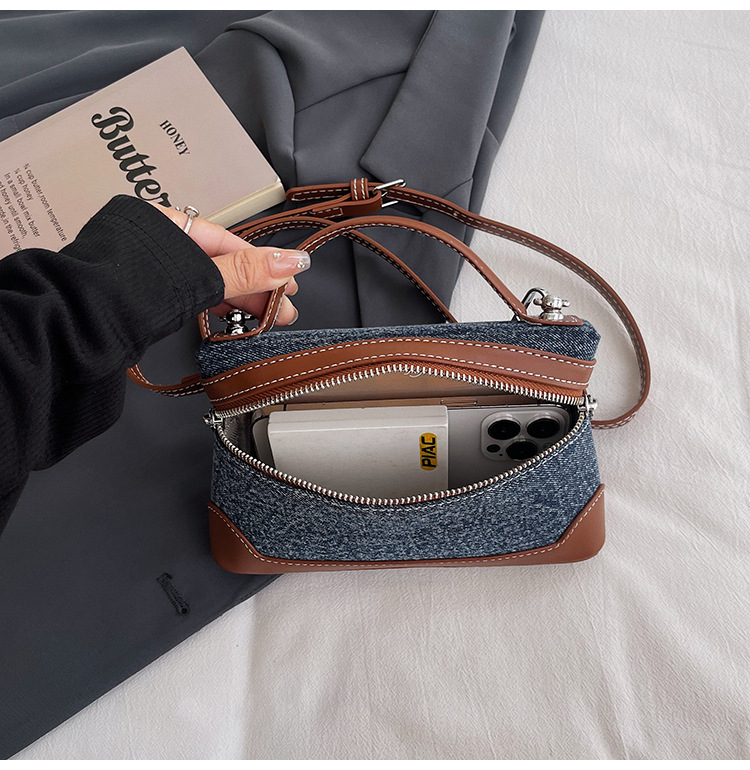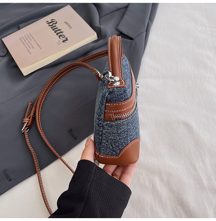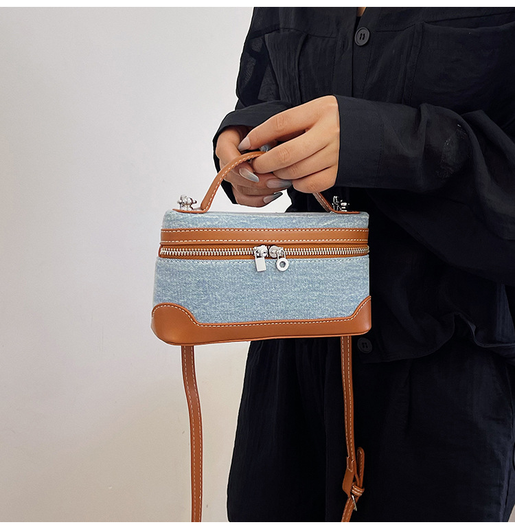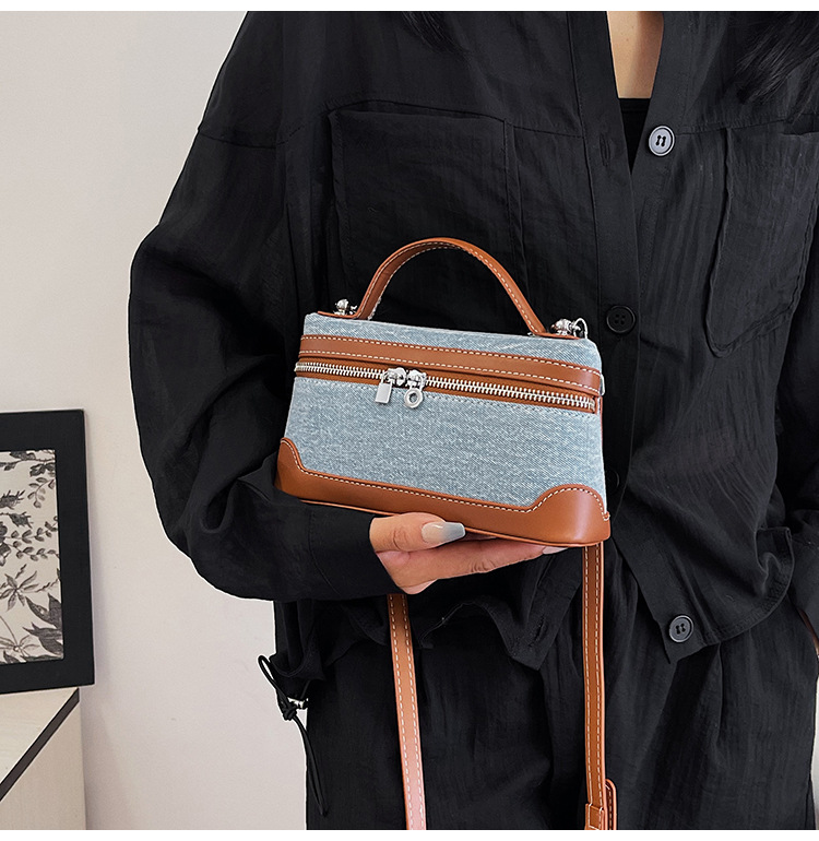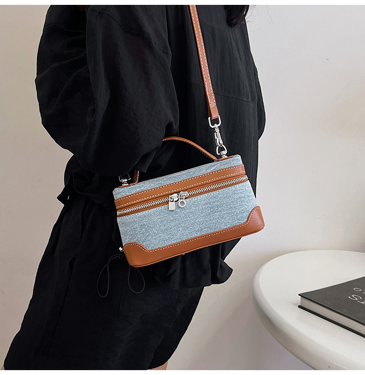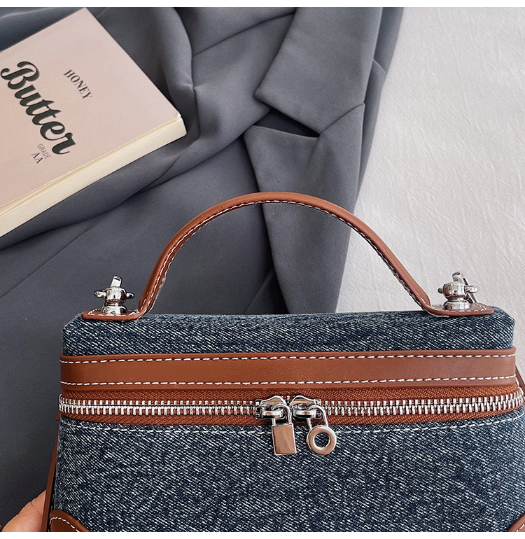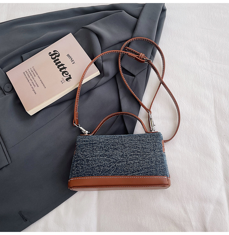 Denim Color Blocked Hand-Held Small Square Bag, Women's New Retro Fashion Casual Shoulder Crossbody Bag