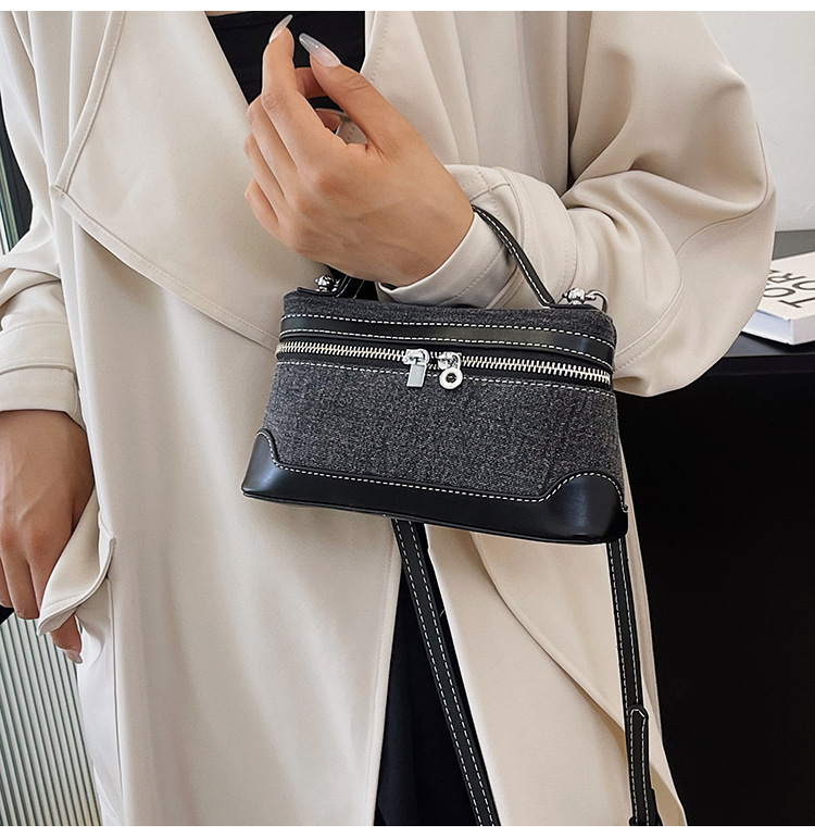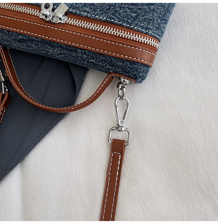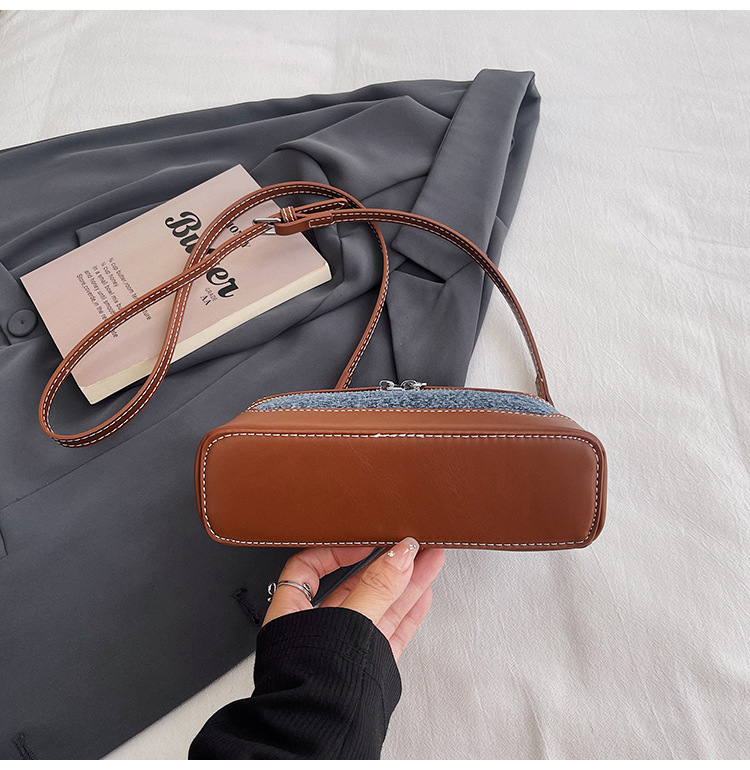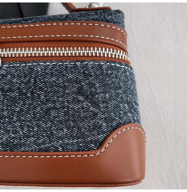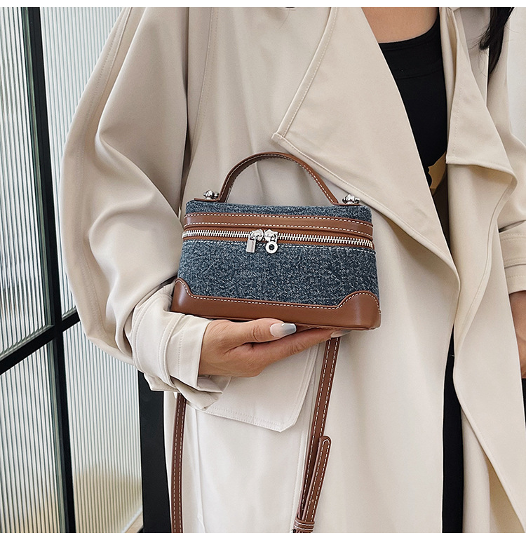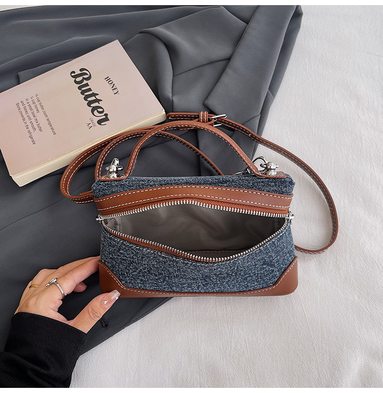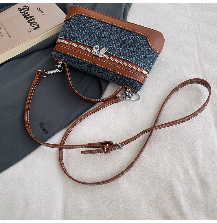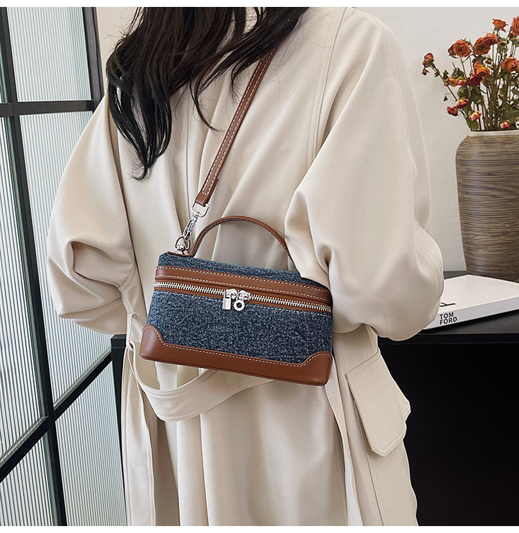 Denim Color Blocked Hand-Held Small Square Bag, Women's New Retro Fashion Casual Shoulder Crossbody Bag