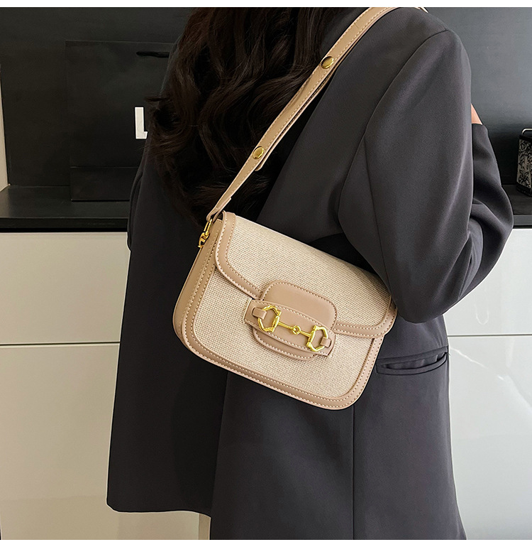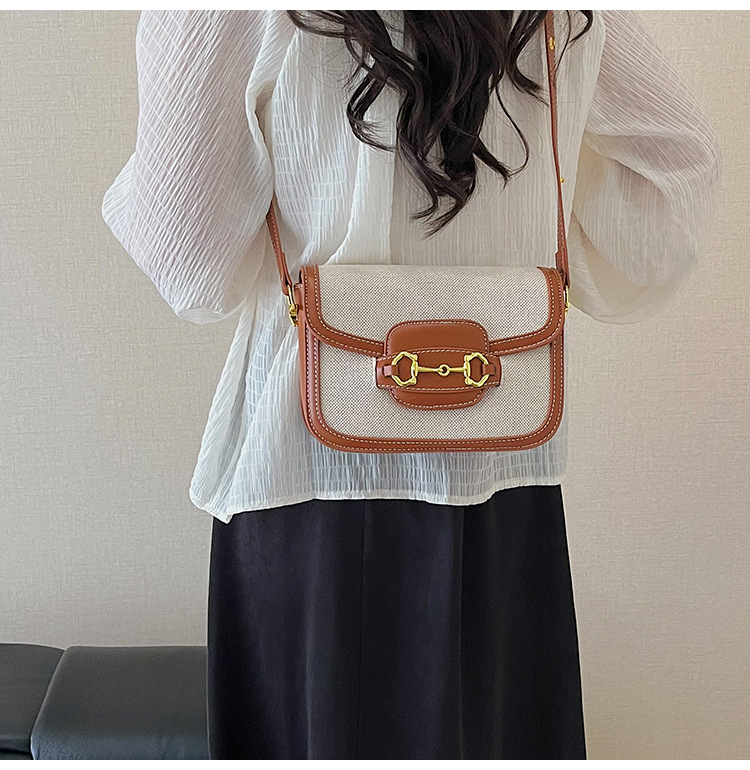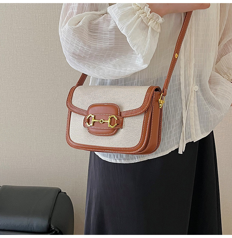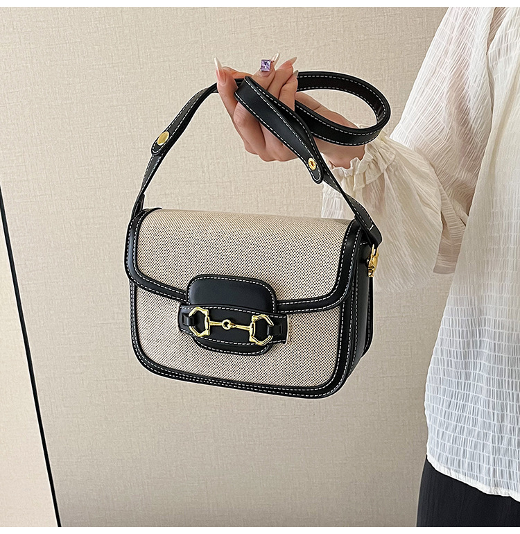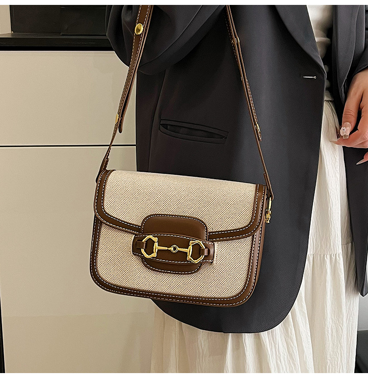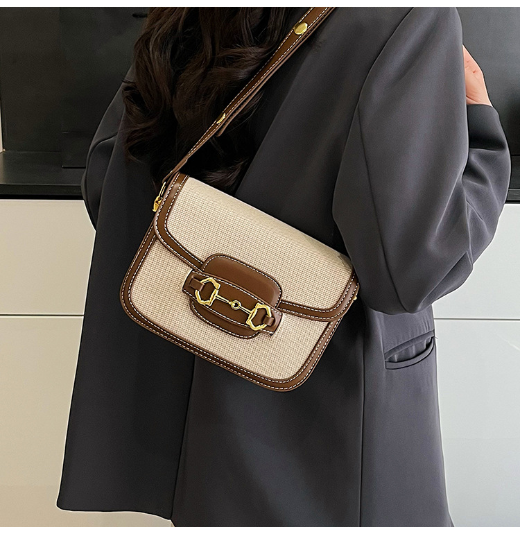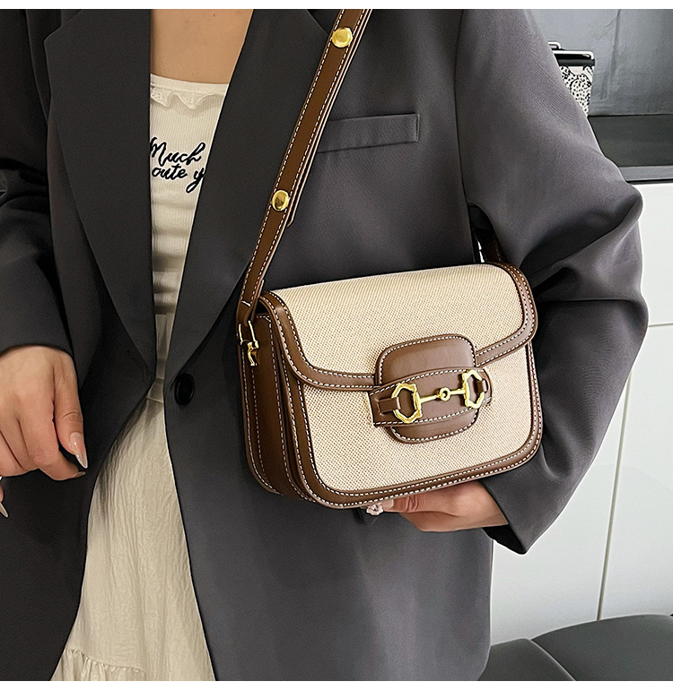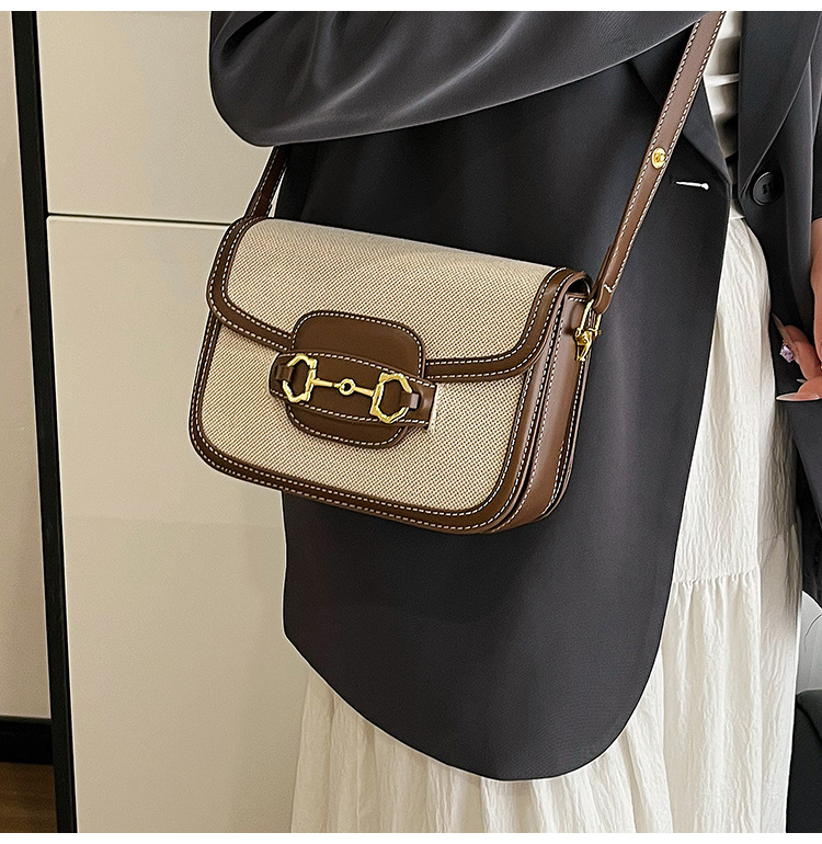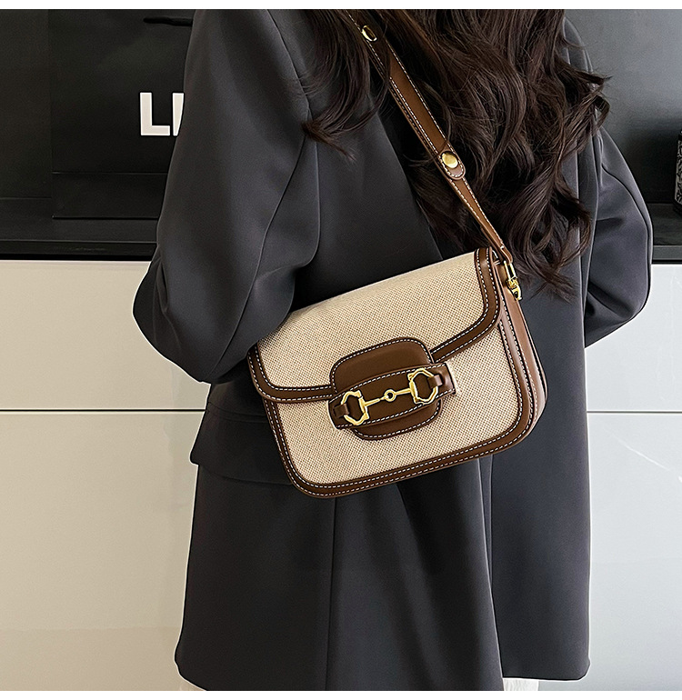 2026 New High-End Fashion Casual Shoulder Crossbody Bag for Women, Vintage Color Blocked Exquisite Saddle Bag
