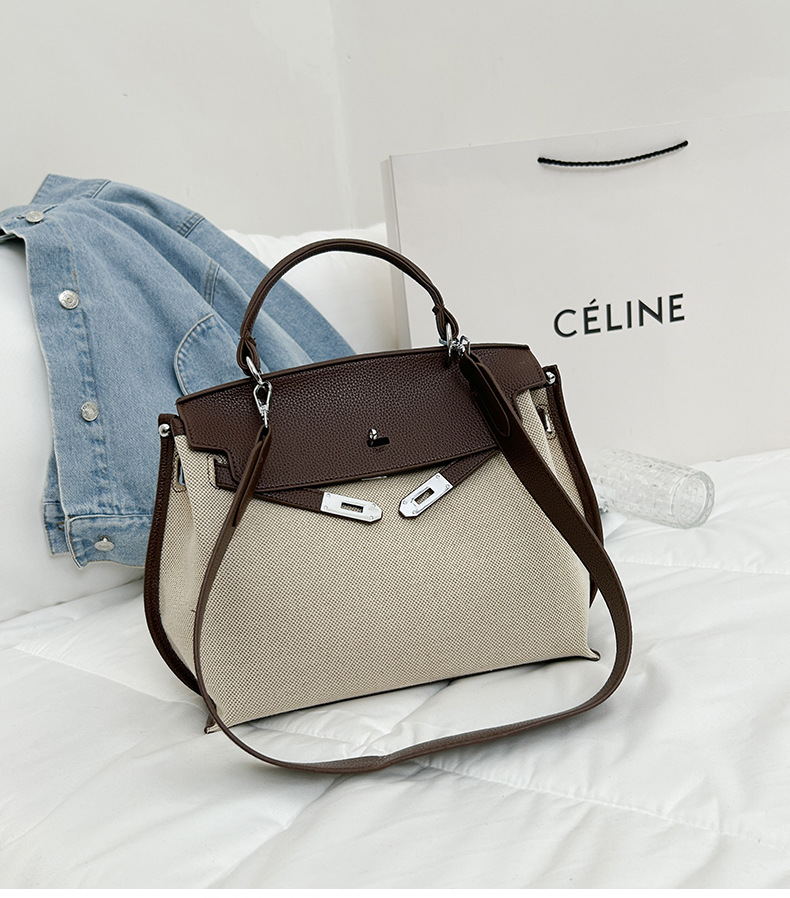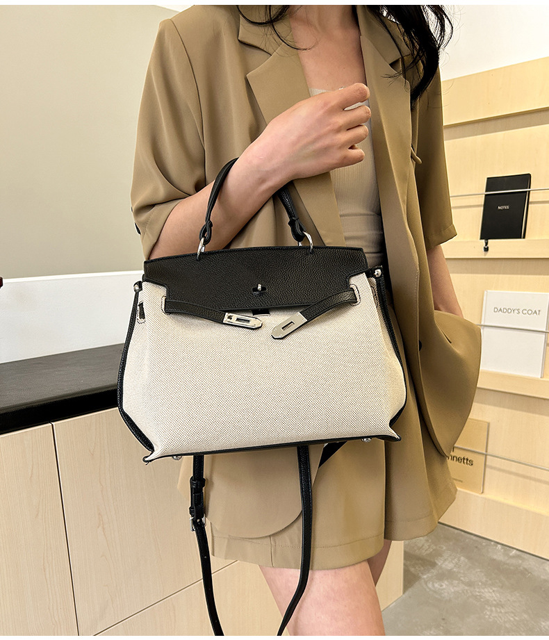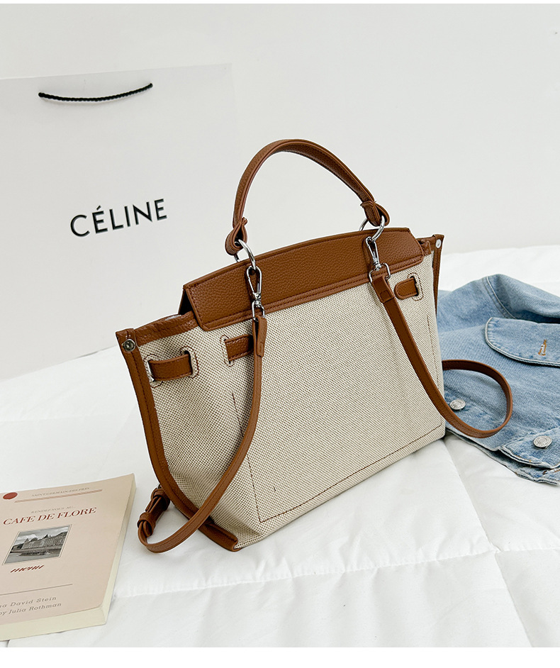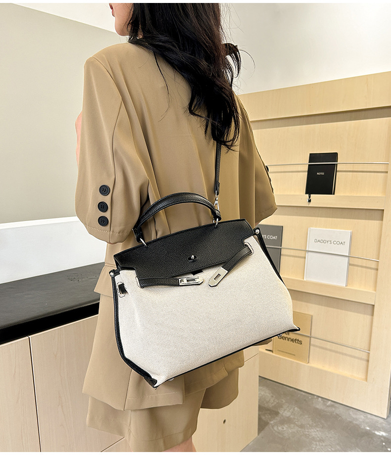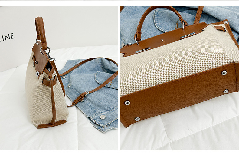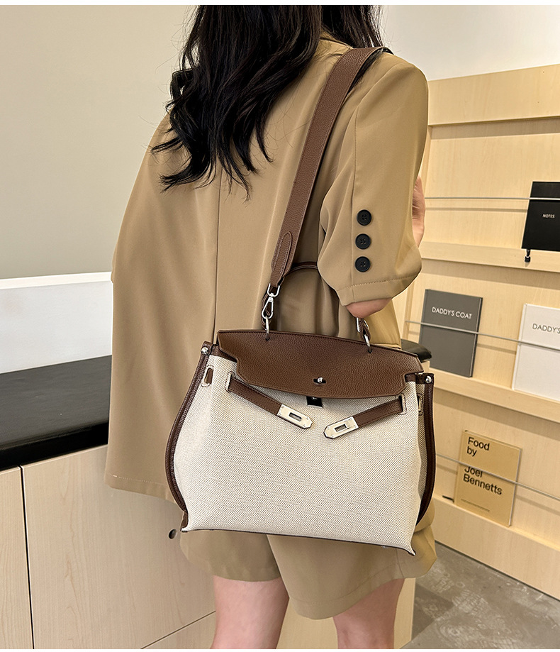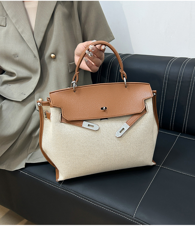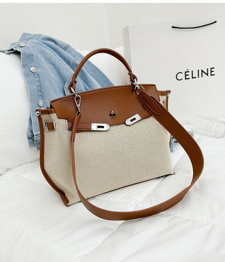 Fashionable Tote Bag, New Canvas Women's Bag, Trendy Large Capacity Contrasting Color Single Shoulder Diagonal Cross Bag