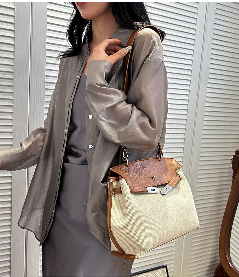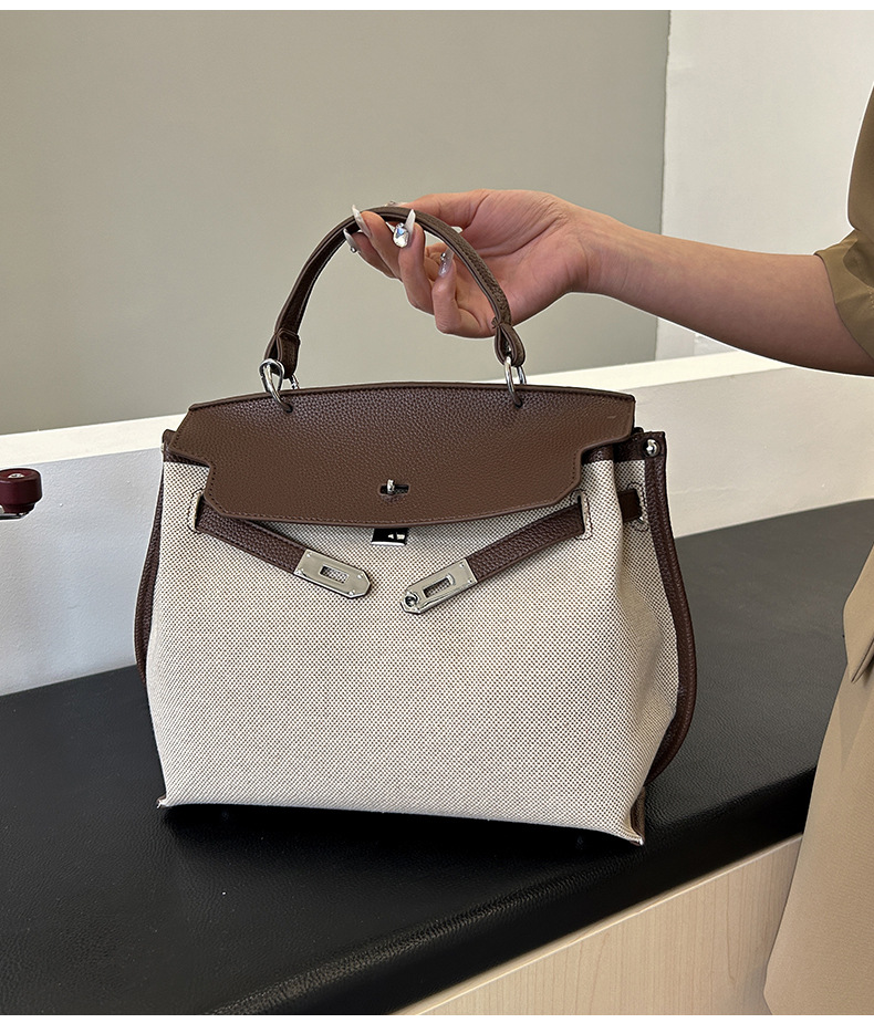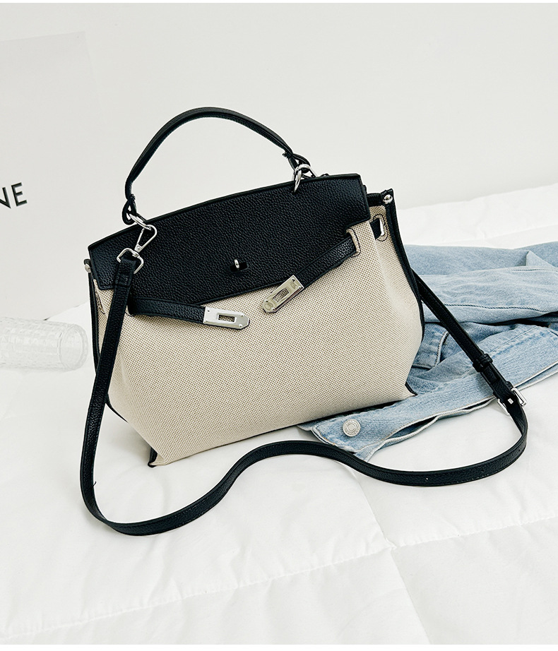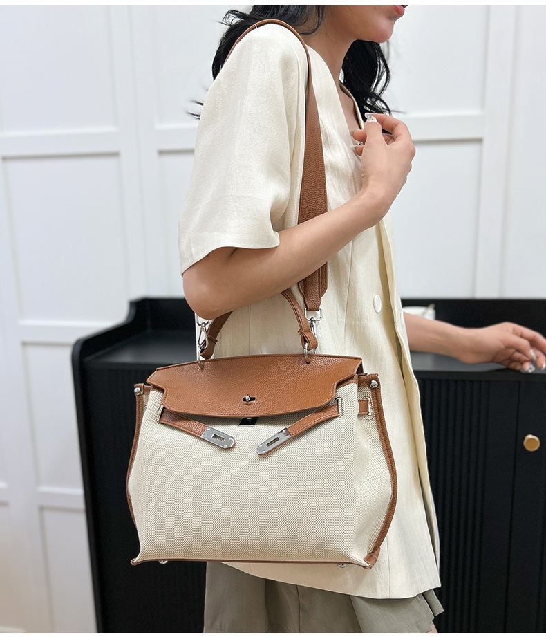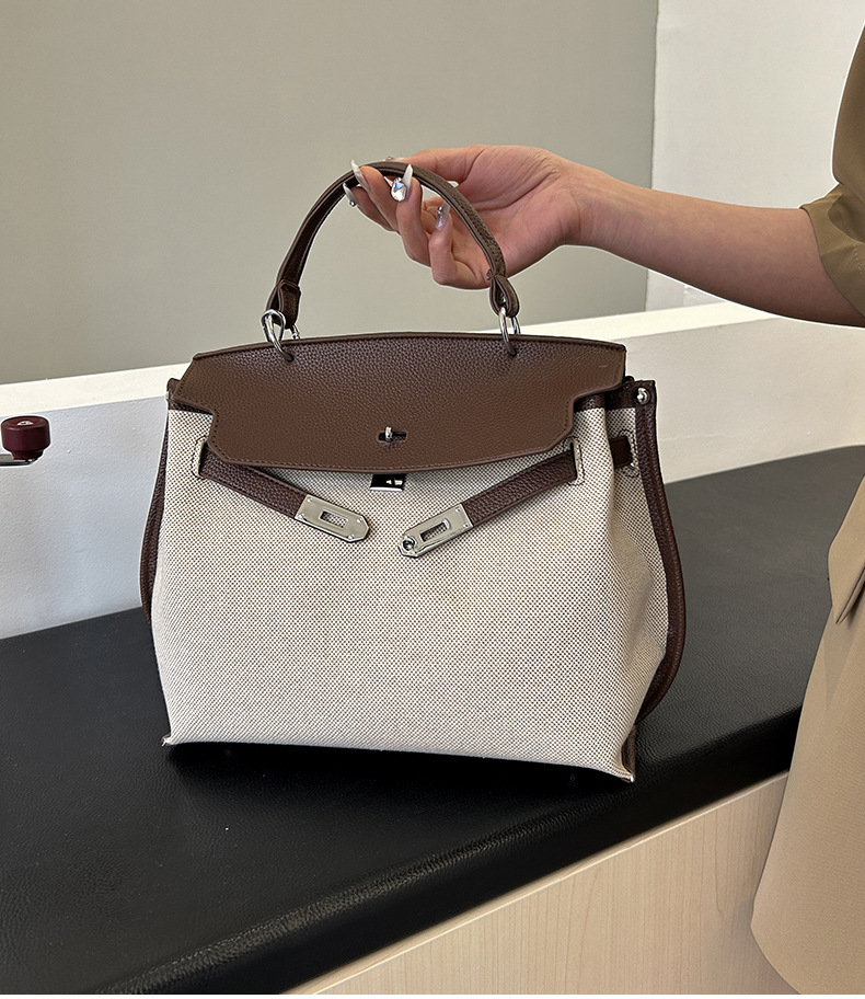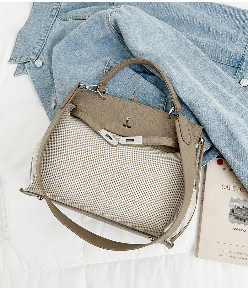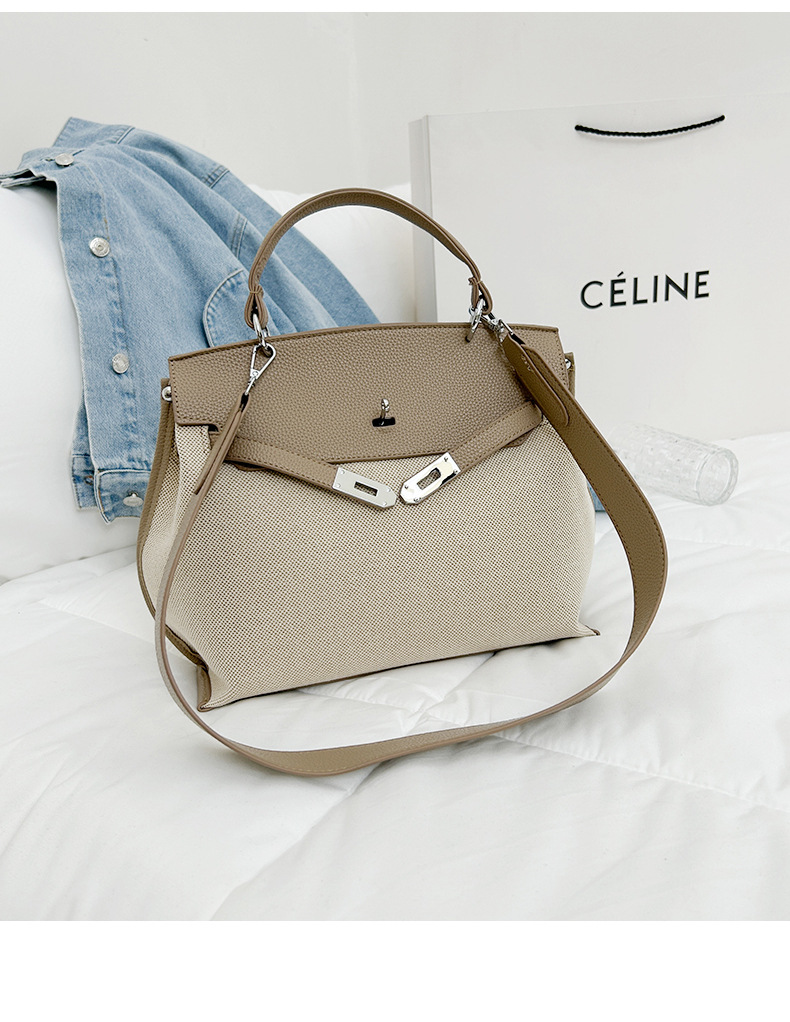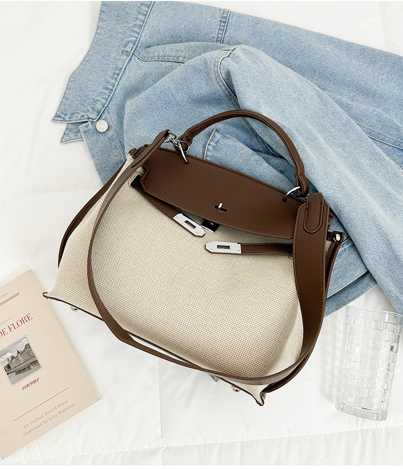 Fashionable Tote Bag, New Canvas Women's Bag, Trendy Large Capacity Contrasting Color Single Shoulder Diagonal Cross Bag