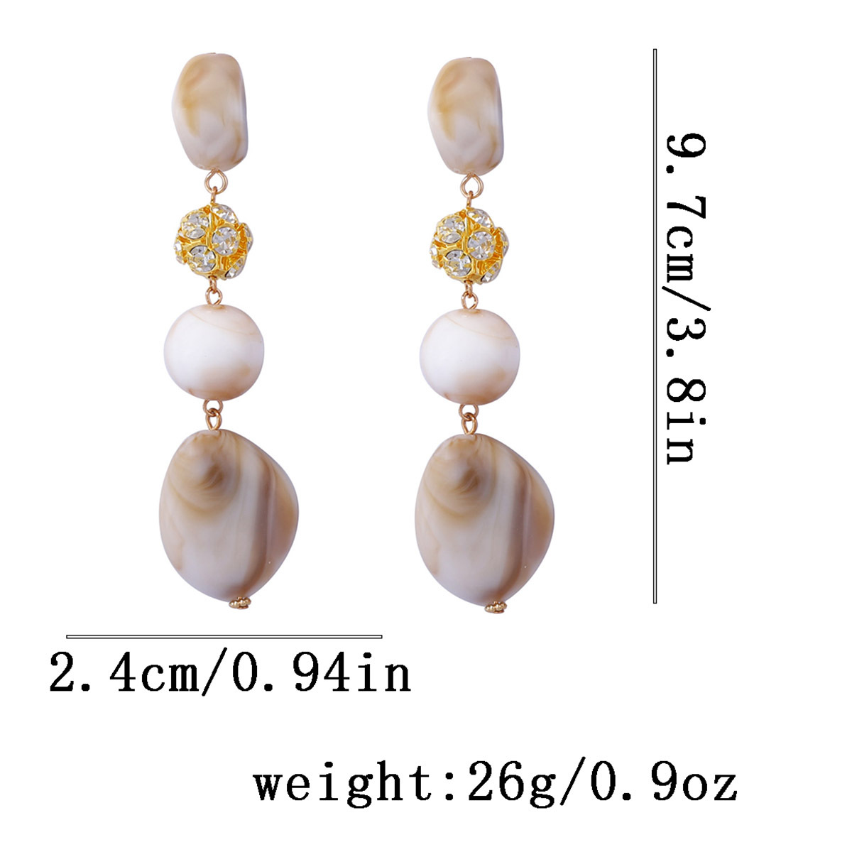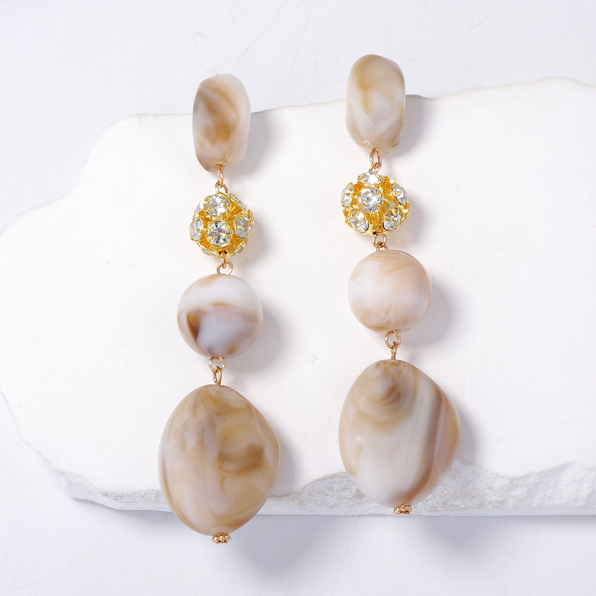 European and American Style Minimalist Retro Geometric Plastic Bead Micro Inlaid Rhinestone Long Tassel Earrings